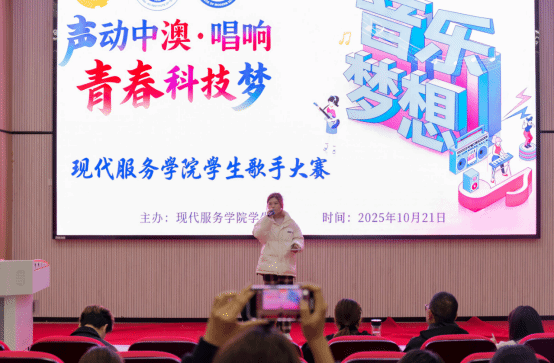 为深化党建育人成效,引导青年学子将个人理想融入国家发展伟业,10月21日下午,现代服务学院以“唱响青春科技梦”为主题的校园歌手大赛在新桥校区报告厅圆满落幕。大赛由学院学生党支部牵头策划,学院团总支和学生会组织实施,邀请学院钱秀凤、吴昊、陆万祺三位党员教师组成专家组评委,通过红色歌曲演唱、理想信念点评等环节,传递初心使命;部分2025级新生代表现场观赛,在歌声中厚植家国情怀,展现新时代青年昂扬向上的青春姿态。