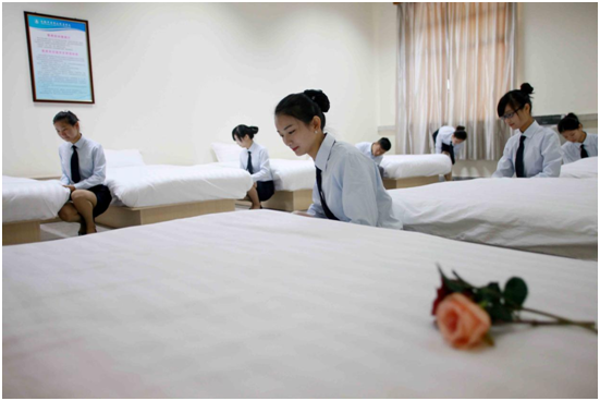 该实训室拥有教学相应配套的设备与设施,主要有中、西式铺床全套用具,包括床、床头柜、床单、枕头、枕套、被、被套等床具设备,主要实训项目包括:客房整理操作技能、中西式铺床技能、走客房清扫、客房对客服务、客房中西式铺床、开夜床等技能操作等。既能够满足酒店服务技能、前厅与客房管理、酒店服务礼仪、现代饭店管理等课程的教学需要,也能满足学生第二课堂实训需要。同时,还可以开展酒店管理专业的资格证书培训与考试、就业培训与考试、岗前培训与考试、在职培训与考试等活动,为进行相关职业技能培训与考核提供服务条件,使资源得到有效利用。