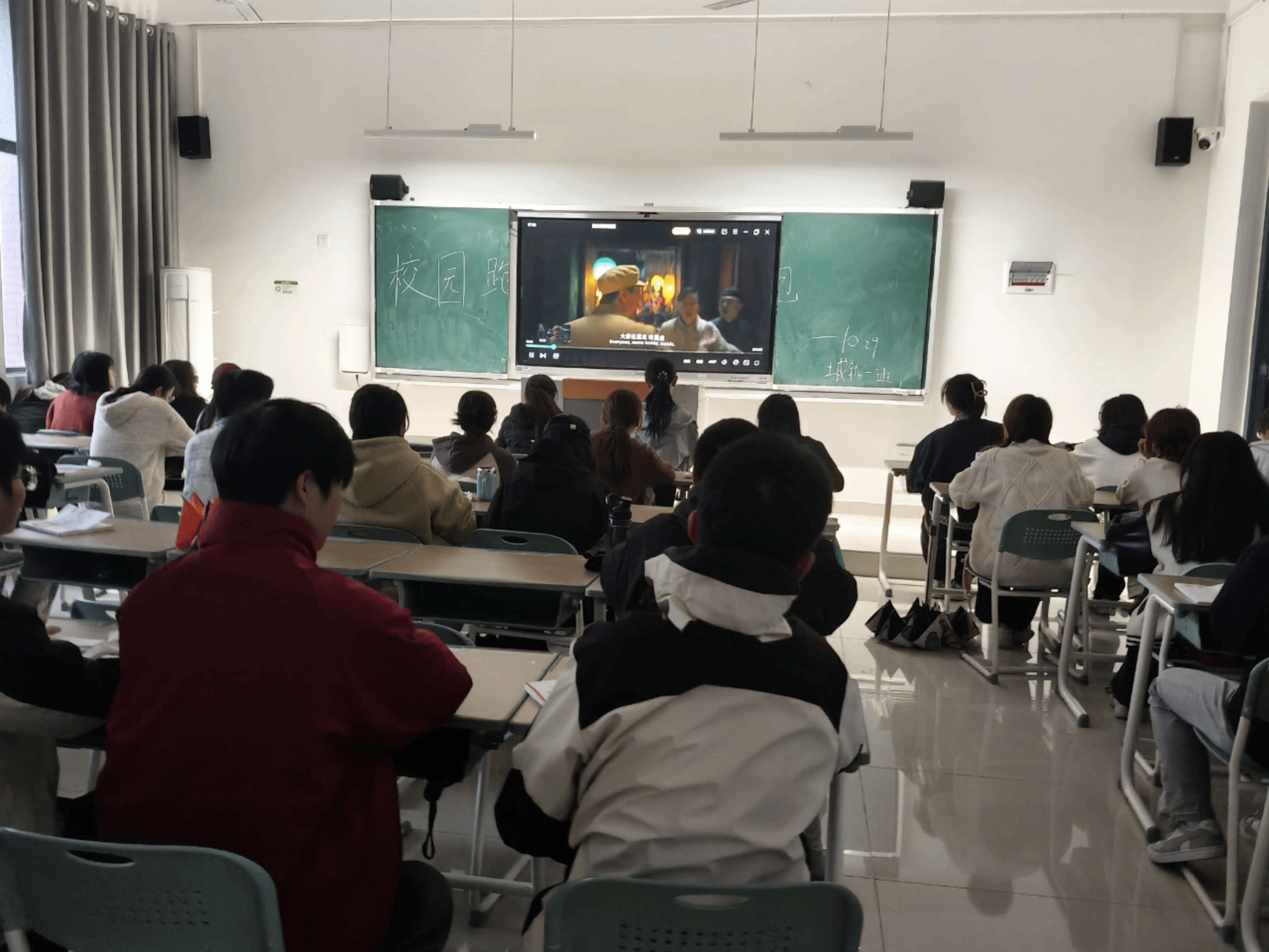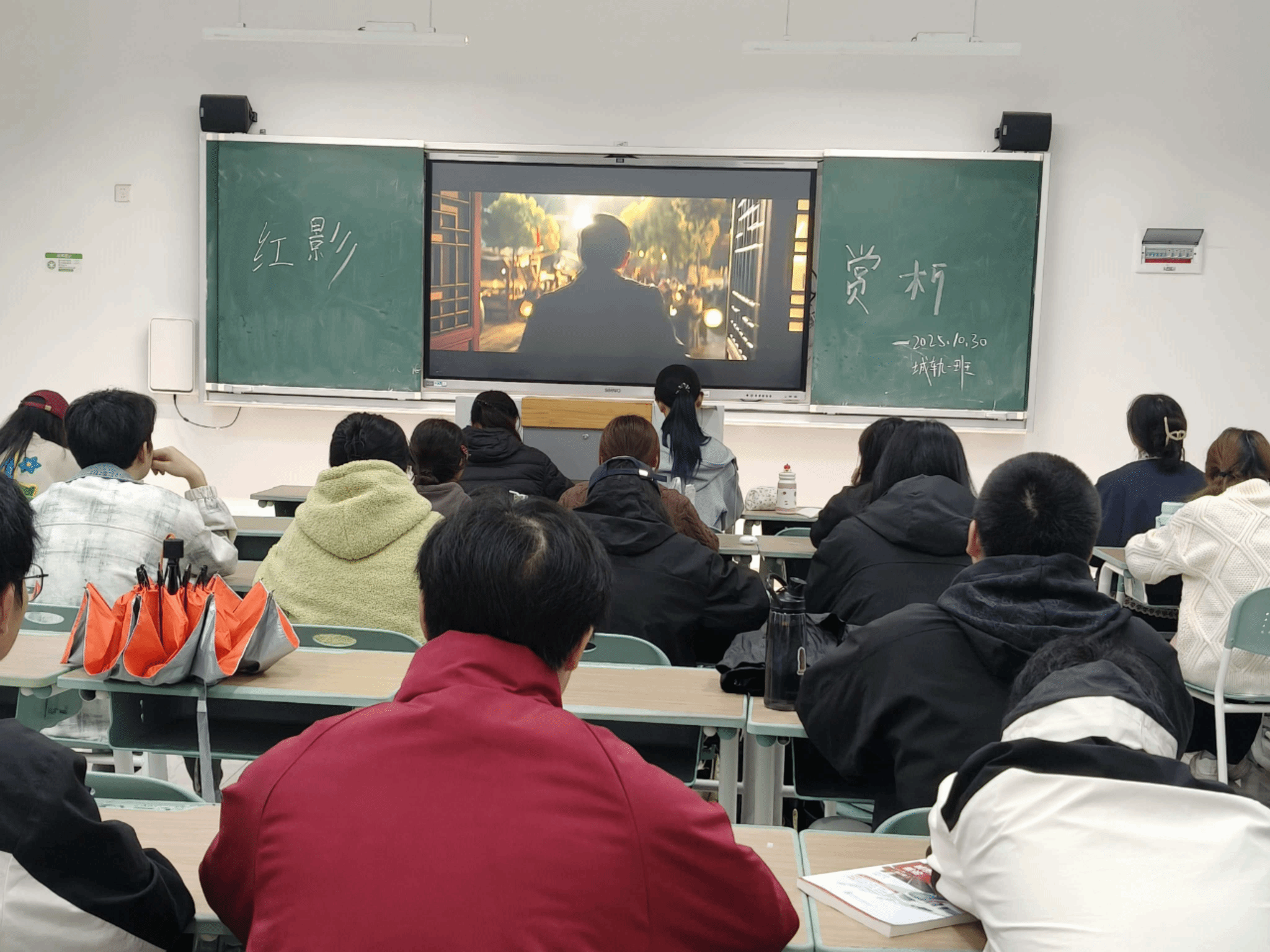 为凝聚集体荣誉感,在共同回顾国家辉煌成就的过程中,增强班级的向心力与归属感,10月30日晚,25级城轨1班在A306教室开展红色电影《我和我的祖国》赏析活动,全班共48名同学参与,同学们在在光影中感悟家国情怀,汲取奋进力量。