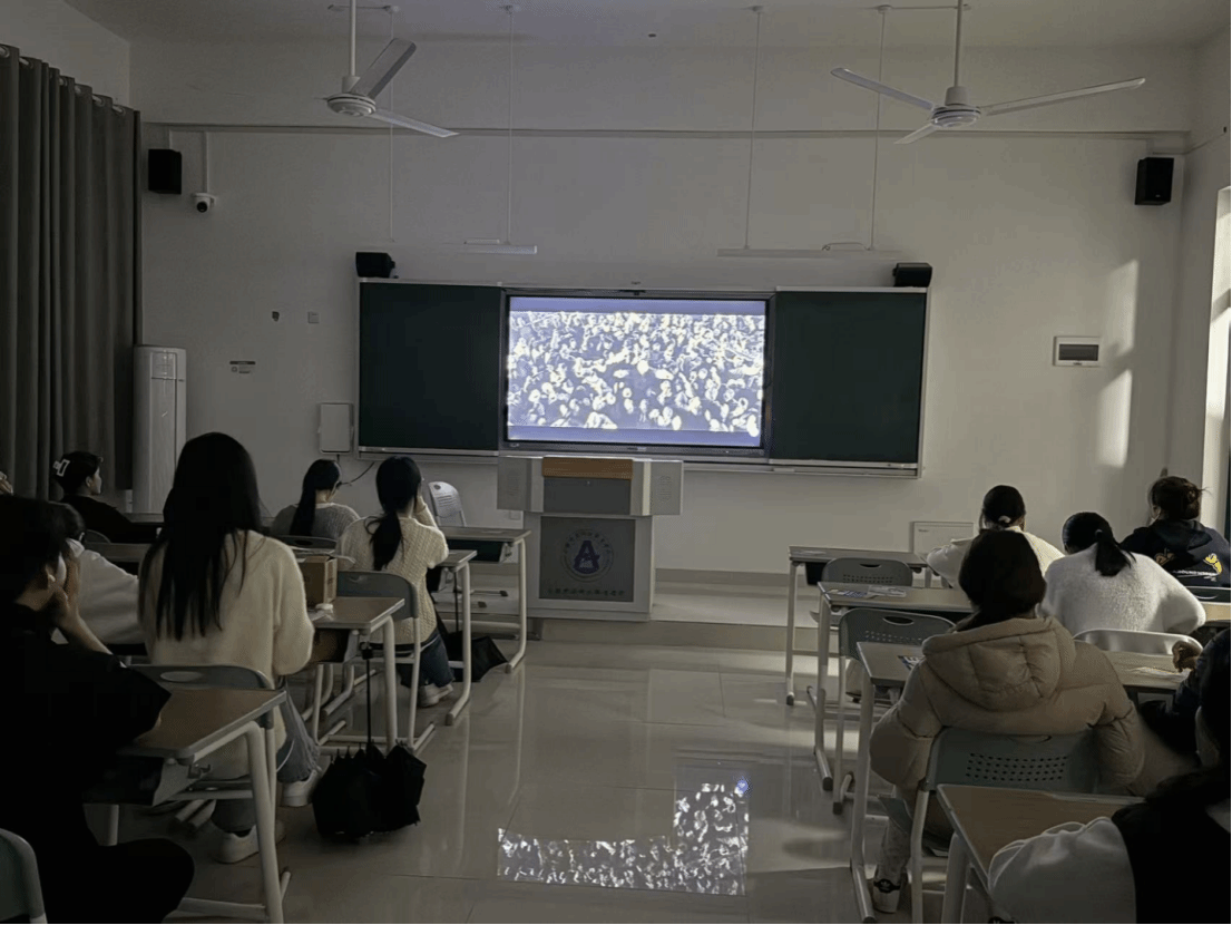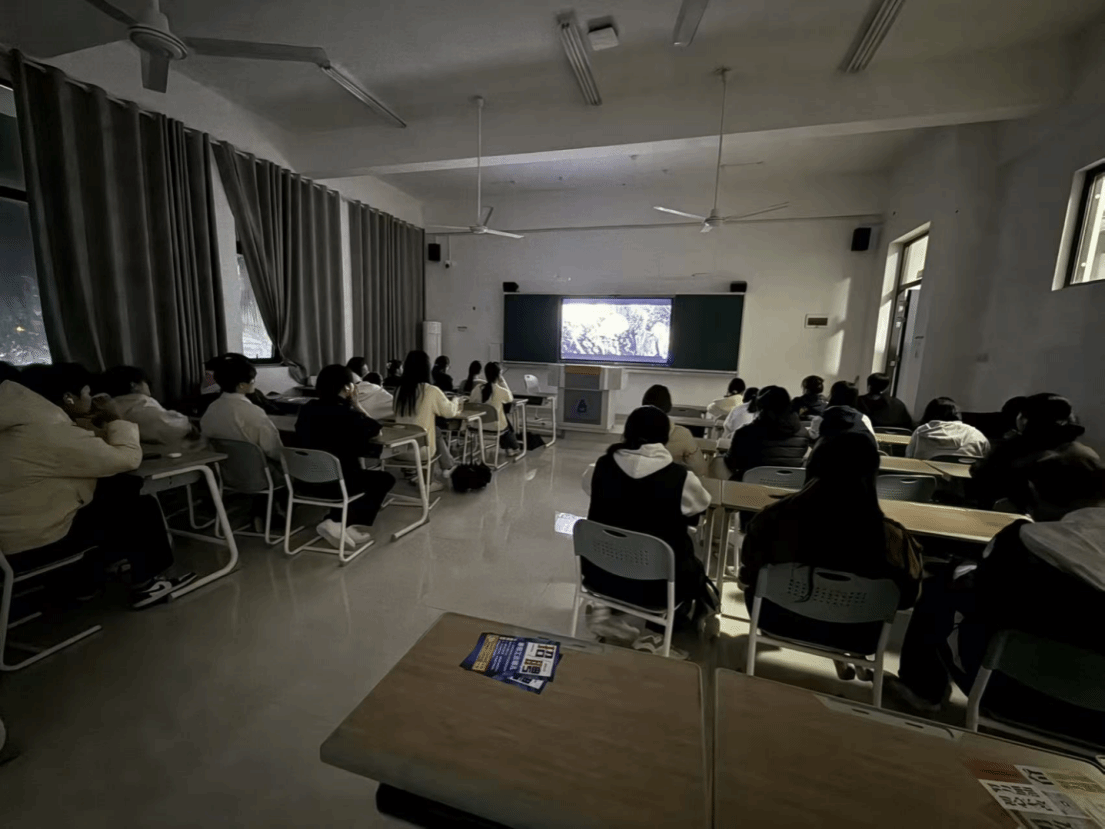 晚自习一开始,聚焦选定的核心红影,完整播放影片《南京!南京!》。播放过程中保持现场安静,让同学们沉浸式感受影片的感情张力与精神内涵。在观影过程中,大家自觉保持安静,专注投入,不时被影片中的感人情节触动。现场氛围庄重而热烈,红色精神在无声的观影中悄然传递。