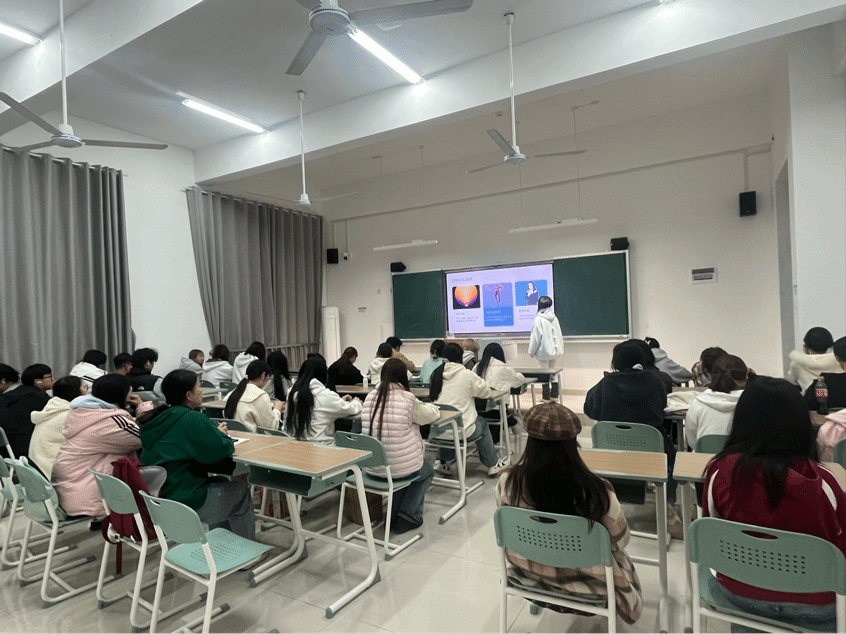 在分享会上,心理委员苏雨晴同学结合精心制作的PPT,从大学生常见的学业压力、人际交往焦虑等问题切入,系统讲解了这些情绪产生的原理。随后,她通过具体案例分析,详细介绍了正念呼吸、合理规划目标、积极心理暗示等多种压力疏导方法,并针对不同场景给出了针对性的应对建议。分享过程中,苏雨晴还通过PPT展示了权威的心理测评量表和求助渠道,引导同学们正确认识自身心理状态,必要时主动寻求帮助。