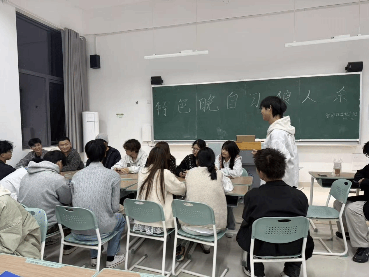 “天亮请睁眼,本轮投票结果公布!” 11月17日晚,25级智能建造技术班在A203教室举办了一场热闹又烧脑的“班级狼人杀特色晚自习活动”。全班共52名同学参加。