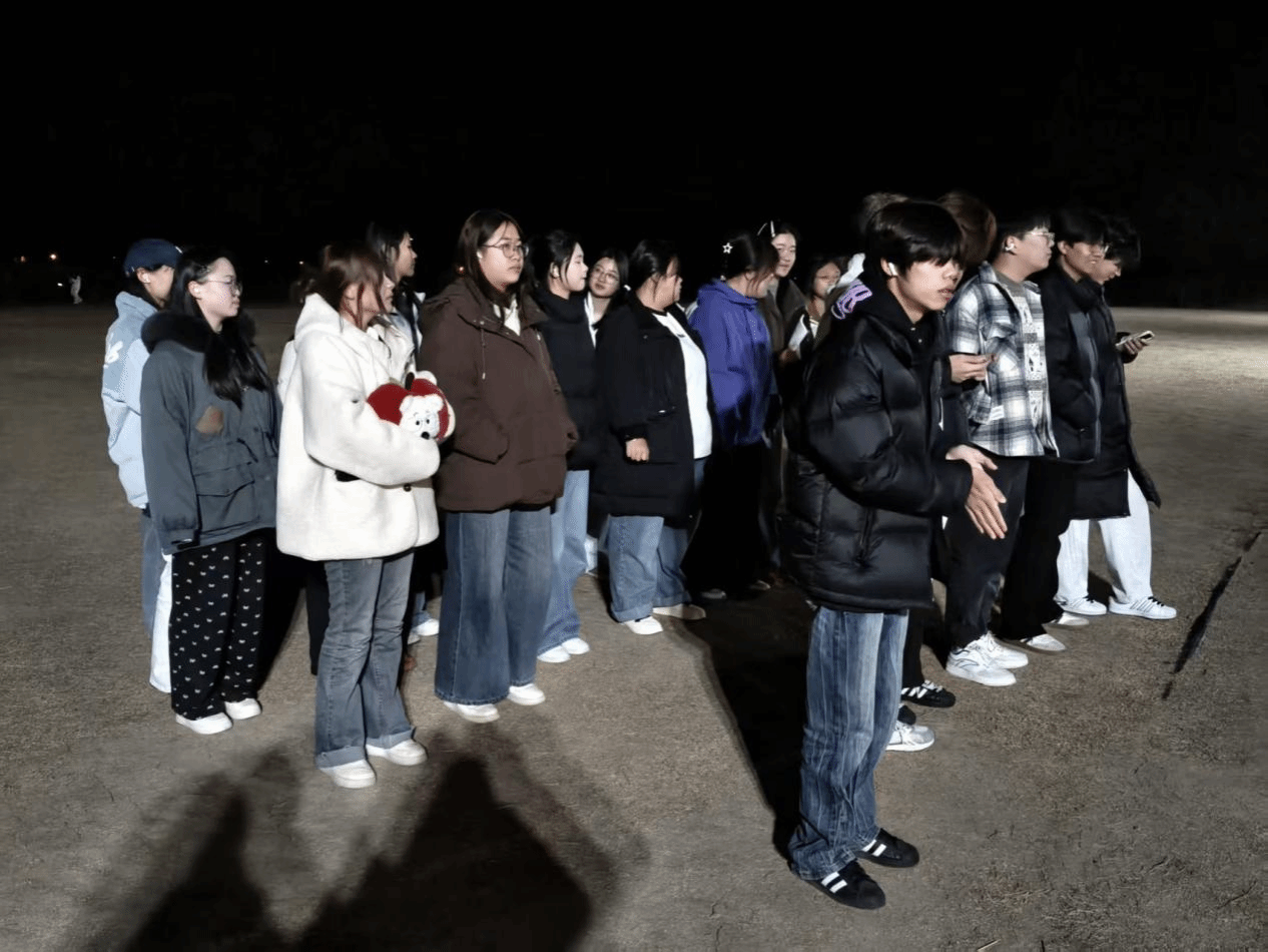 夜晚时分,同学们在指定地点集合完毕,随着出发指令下达,大家以班级为单位列队奔跑,身影穿梭在灯光点缀的校园跑道上。途中,同学们相互鼓劲、不掉队不争先,脚步声、加油声交织成青春的乐章。灯光下的身影矫健昂扬,沿途既有相互加油的鼓励,也有放慢脚步等待同伴的温暖,全程洋溢着青春热血与团结友爱的氛围。