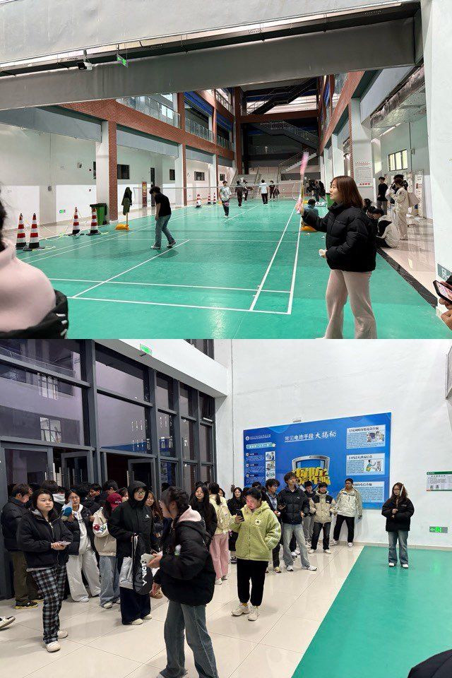 活动现场氛围热烈,同学们迅速组队、跃跃欲试。随着羽毛球的凌空飞起,全场瞬间充满活力:球拍挥击的清脆声响、学子们的呐喊助威声交织在一起,扣杀的利落、吊球的巧妙、搭档间的默契配合,每一个瞬间都展现着青春的蓬勃朝气。大家在奔跑跳跃中释放学习压力,在竞技比拼中增进彼此情谊,尽情享受运动带来的快乐。