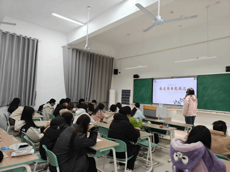为营造“爱读书、读好书、善读书”的班级氛围,引导同学们在阅读中沉淀思想、增长才干,25级城轨4班于11月23日晚,在教学楼A310教室举办“最是书香能致远”阅读主题活动。本次活动由班长牵头策划,她以PPT专题分享为核心形式,搭配互动交流环节,全班40名同学齐聚一堂,共赴书香之约。