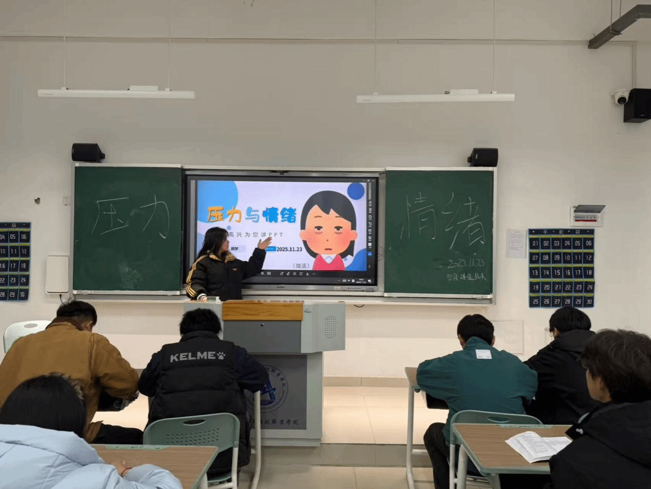 为切实关注大学生身心健康,帮助同学们科学应对学习生活中的压力,有效调节情绪状态,25智能建造技术班于11月24日晚,在A203教室开展了以“压力疏导与情绪管理”为主题的特色活动,为同学们送上了一堂实用的心理健康“必修课,全班共51名同学参与。