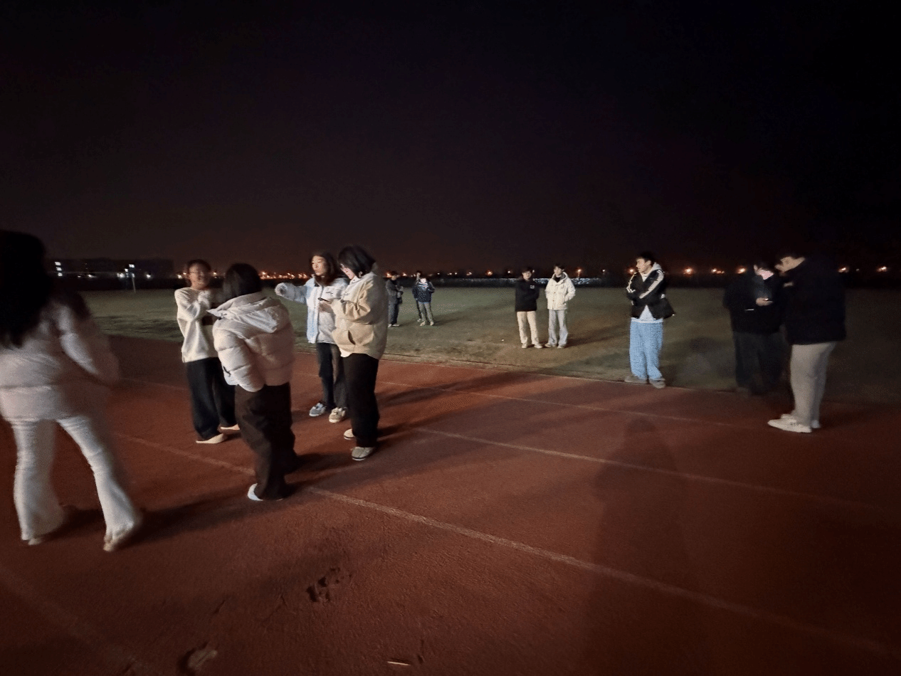 为打破晚自习的单调模式,丰富班级课余生活,增进同学间的交流互动,12月29日晚25级工程造价1班将特色晚自习移至校园操场,开展了一场充满童趣的“丢手绢”游戏活动,让夜晚的跑道成为班级欢乐的聚集地。