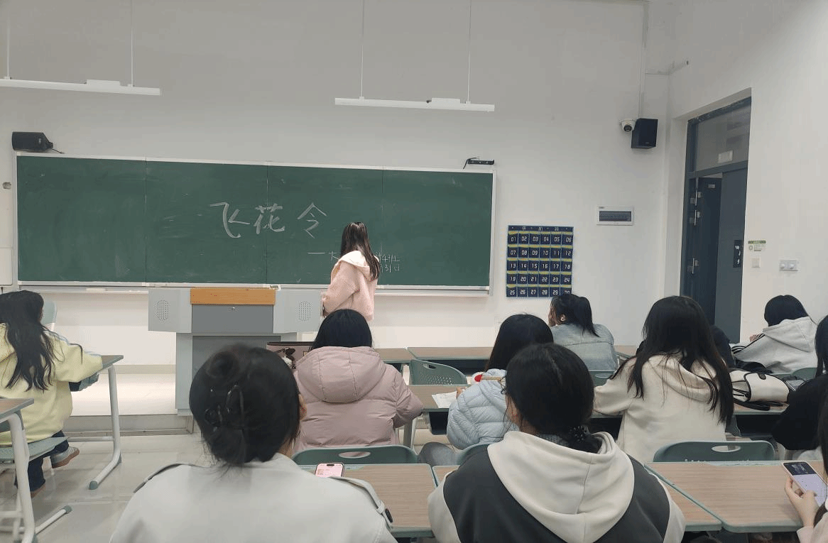 活动伊始,组织委员向全体参赛同学详细讲解了“飞花令”的竞赛规则、作答要求与注意事项,明确本次活动以指定关键字为核心,选手需轮流背诵含有关键字的诗句,限时作答、答错或超时即淘汰,多轮比拼后决出优胜者。清晰的规则说明让同学们快速进入状态,现场氛围轻松而热烈。