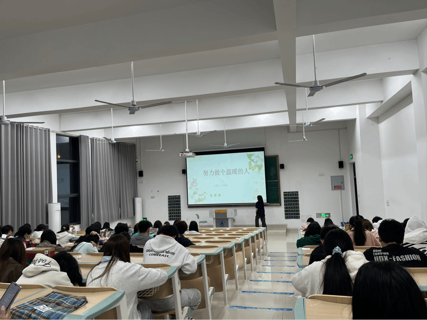 活动伊始,心理委员苏雨晴同学以温情短片、暖心故事分享为引,向同学们阐述了“温暖”的深刻内涵,讲述了生活中点滴善意带来的美好力量。从身边的举手之劳、言语鼓励,到人际交往中的包容理解、互帮互助,引导大家明白温暖无需惊天壮举,藏在日常的细微之处,是对他人的善意、对生活的热爱、对集体的担当。现场氛围温馨融洽,同学们认真聆听、用心感悟,对“做温暖的人”有了更清晰的认知。