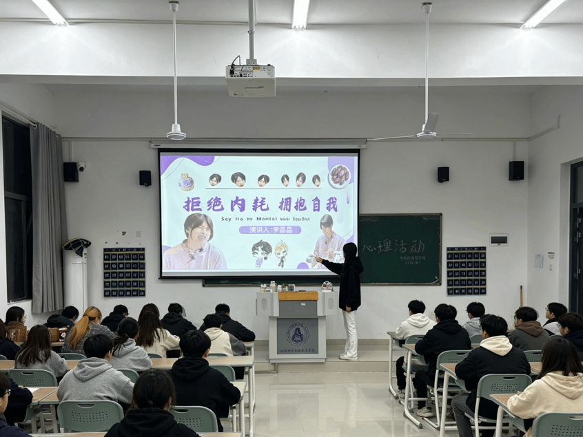 为帮助同学们摆脱精神内耗,树立积极健康的心态,4月7日晚,现代服务学院25级智能建造技术班在教室A205开展“拒绝内耗 拥抱自我”心理健康主题班会,本次班会由班级心理委员李晶晶主讲,全体同学参与活动。