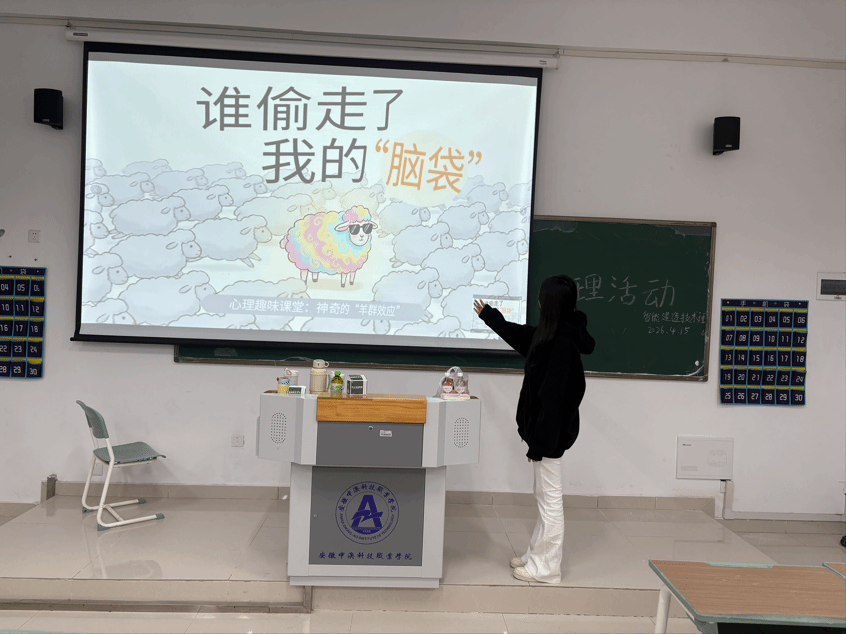 本次课堂以“羊群效应”为核心切入点,通过趣味动画、案例分享、互动讨论等形式,生动拆解了从众心理的形成逻辑与潜在影响。心理委员李晶晶以“彩色绵羊混入羊群”的趣味画面引入主题,用生活化的案例,如跟风消费、盲从他人选择等,让同学们直观感受到“羊群效应”在日常学习生活中的体现,深刻理解盲目从众对个人判断与成长的阻碍。