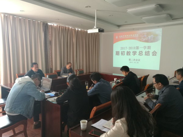 10月20日上午,我院召开本学期期初教学检查总结会暨第二次教学工作会议,教务处、学生处、总务处、三系两部、督导组参会。院长汪源浩、副院长姚明会参加会议,会议由姚明会主持。