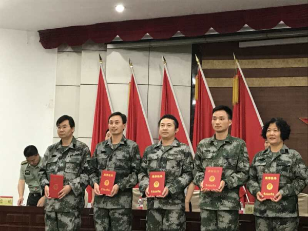 在全国高校“第八期军事课骨干教师研修班”结业典礼上,我院武装部副部长龚光雄在培训期间成绩优异、表现突出,获得“优秀学员”荣誉称号,教育部体卫艺司副司长刘培俊为其颁奖。