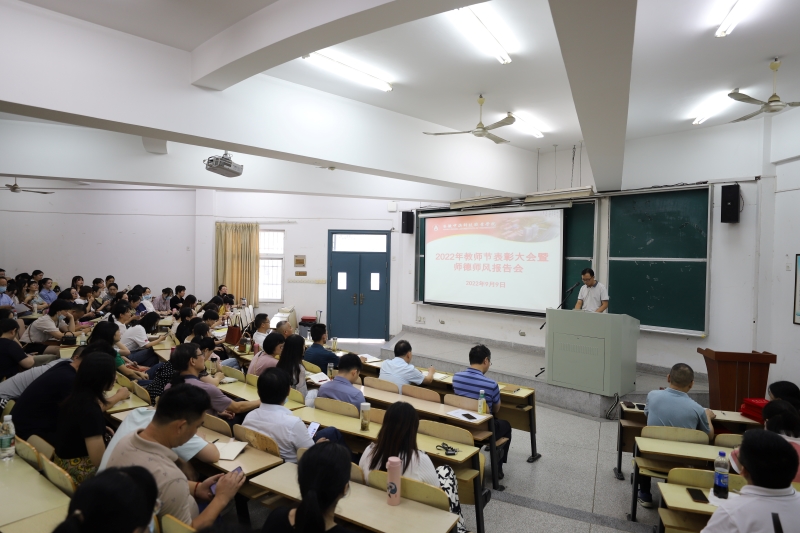 为树立典型、表彰先进,激励广大教师忠实履行教育职责,打造师德高尚、业务精湛、充满活力的高素质教师队伍,9月9日下午,我院在阶梯教室召开2022年教师节表彰大会暨师德师风报告会。院领导、全体教职工参加会议。