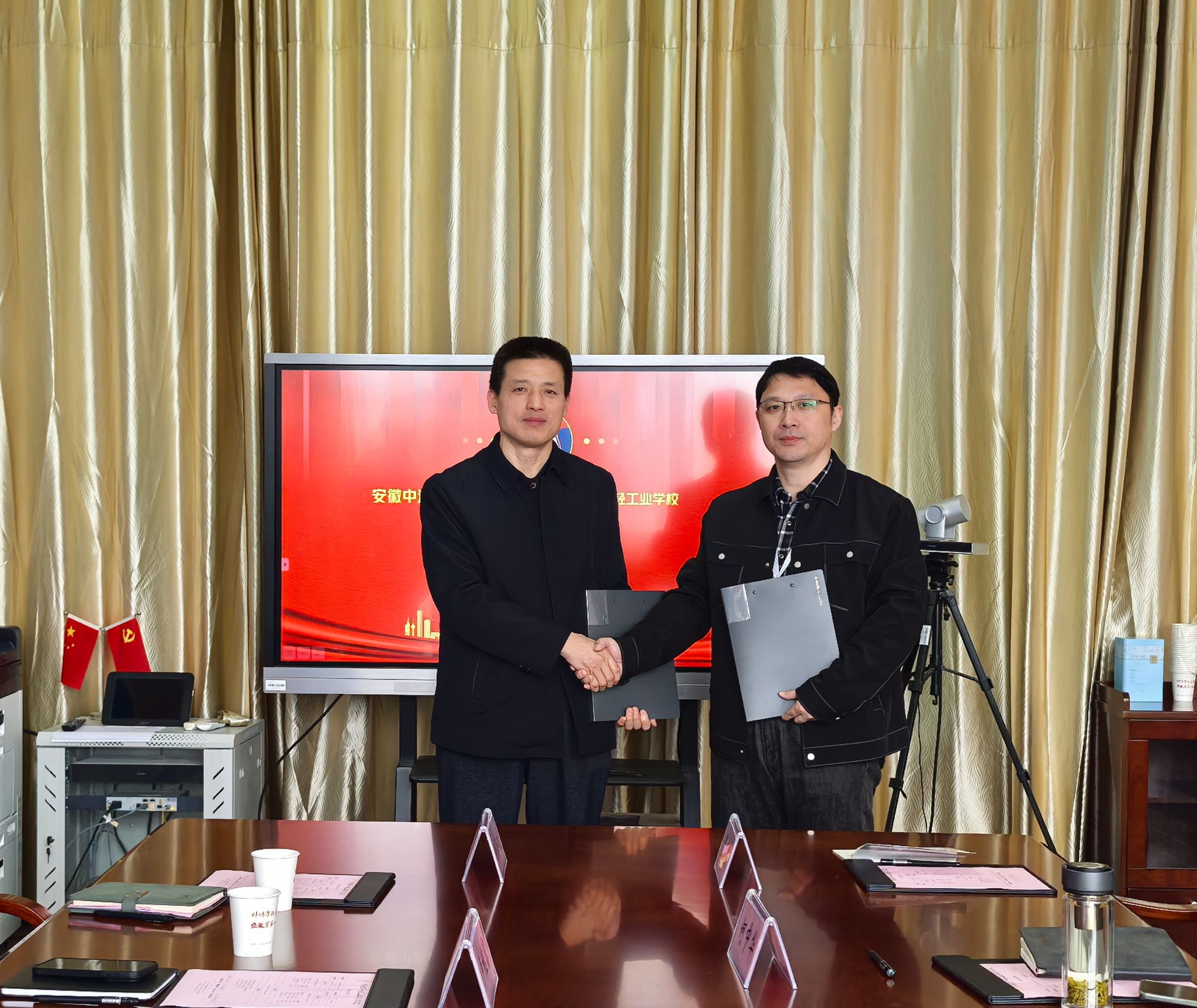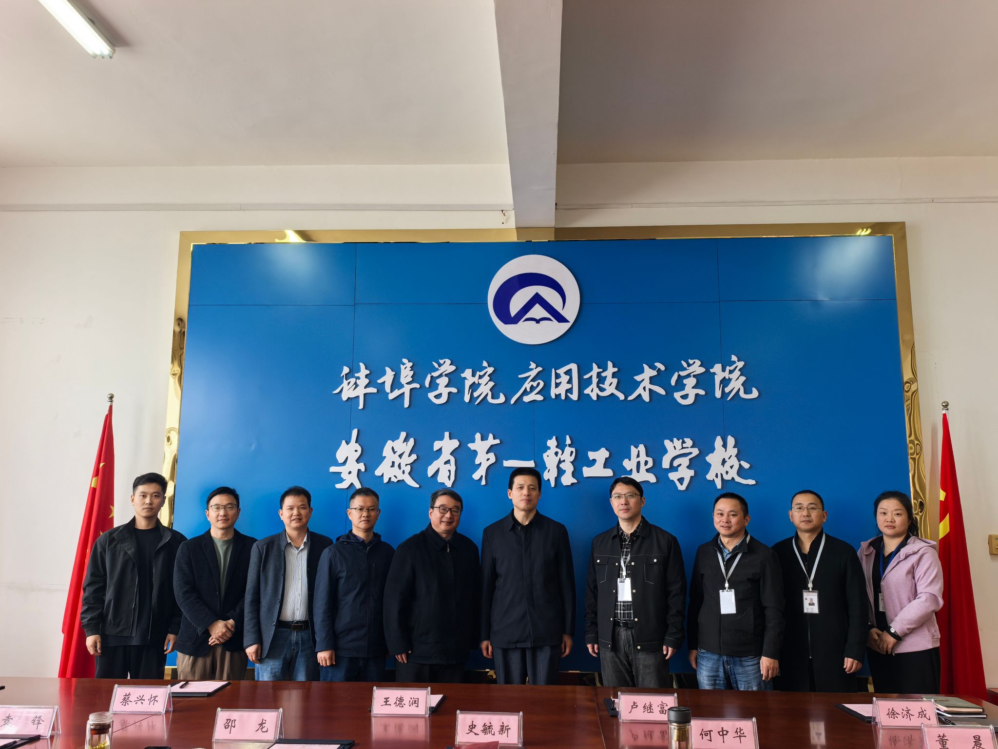 在安徽省第一轻工业学校,该校党委书记史毓新、校长邵龙对我院一行表示欢迎,并陪同参观了该校智能制造实训中心及特色教学工坊。座谈会上,双方就专业建设、实训基地建设、师资队伍培养等方面合作事项进行了交流,并签订了合作协议。