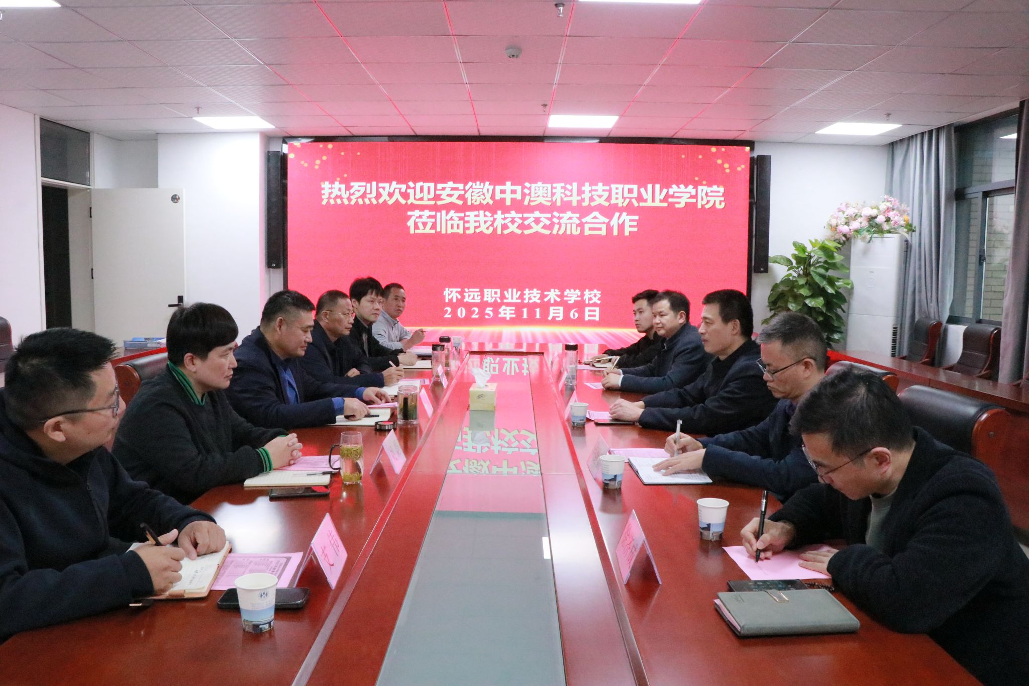 在怀远职业技术学校,该校校长杨斌对我院一行表示欢迎,并陪同参观了校园各类设施设备。座谈会上,双方围绕中高职衔接、学生培养、专业调整等具体内容进行了深入交流,同时就下一步合作方向达成了初步共识,两校将在人才培养方案、专业课程建设、师资交流等方面开展深度合作,共同探索中高职衔接的有效模式。