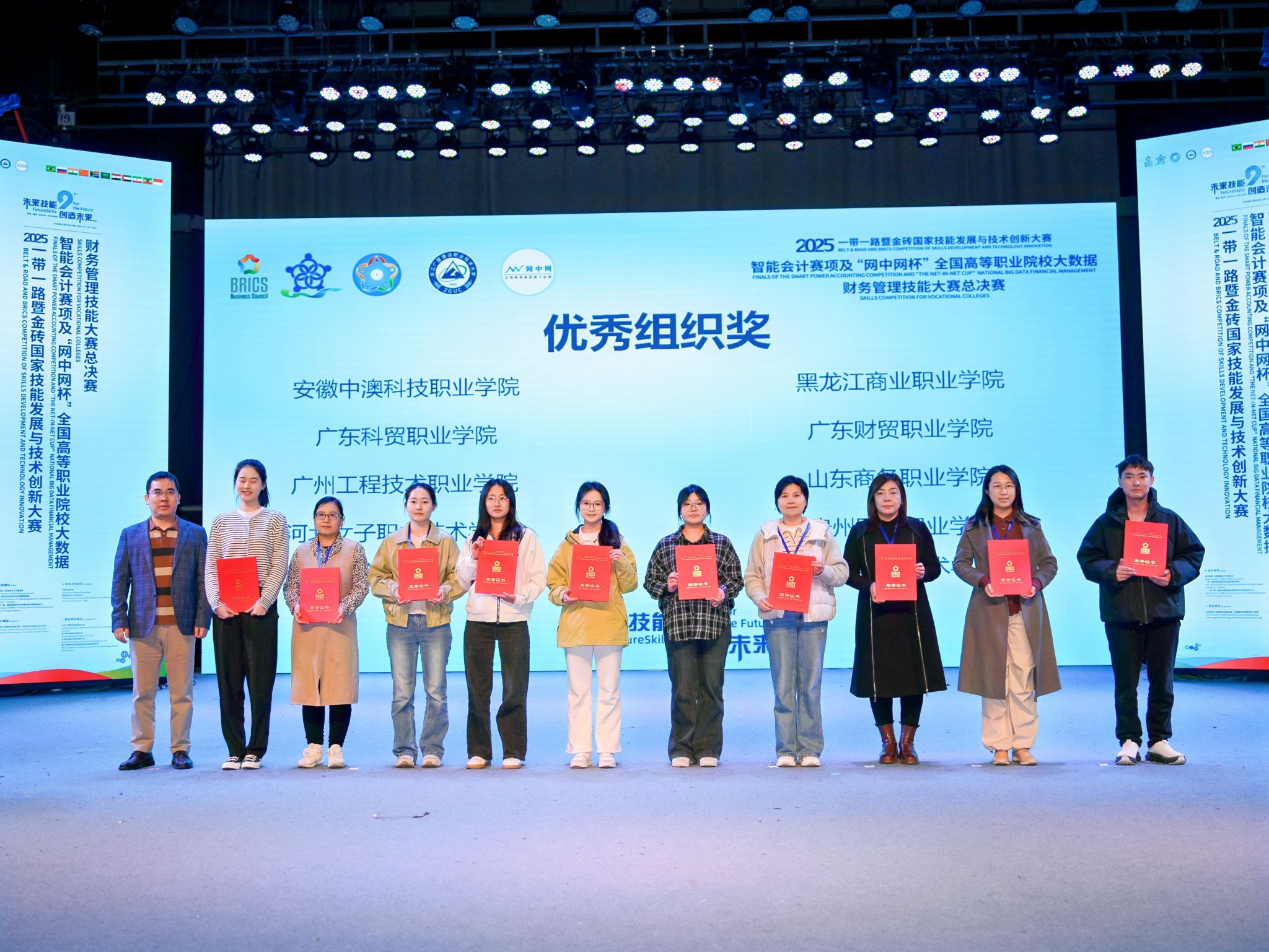 日前,2025年"一带一路"暨金砖国家技能发展与技术创新大赛智能会计赛项暨“网中网杯”全国高等职业院校大数据财务管理技能大赛全国总决赛在浙江广厦建设职业技术大学圆满落下帷幕。由我院吕星宇、黄颖、刘晓慧、徐冬梅四位同学组成的参赛团队,在与全国500余支参赛队伍的激烈角逐中脱颖而出,荣获全国二等奖。同时,凭借周密的组织与有力的保障,我院被大赛组委会授予“优秀组织奖”。