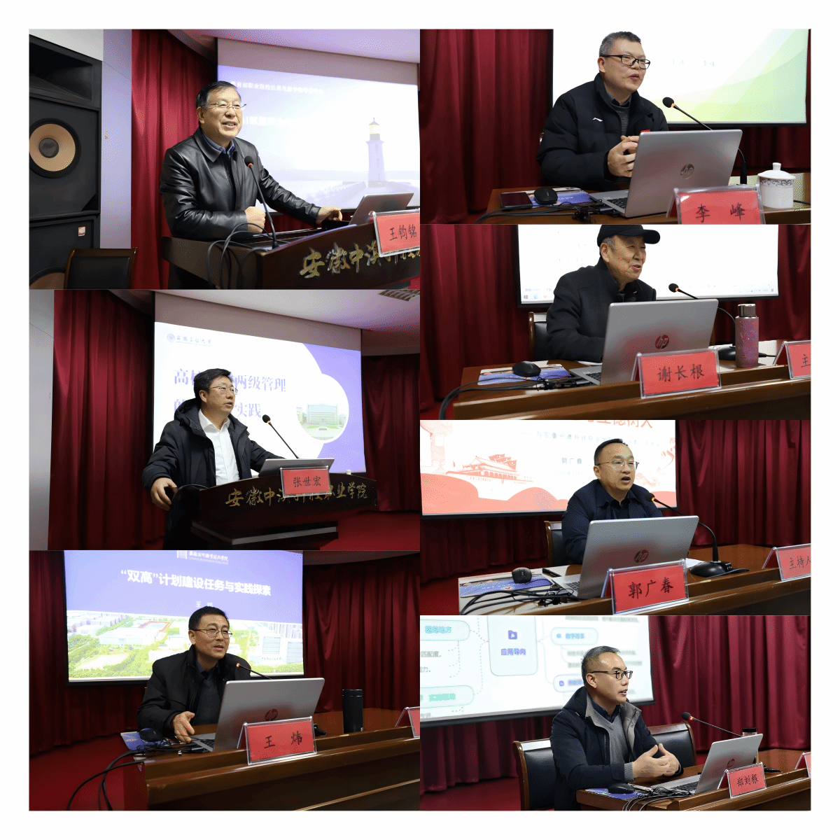 本次培训课程内容丰富、针对性强,紧密结合新时代高等教育发展要求与学校工作实际。期间,邀请了教育部全国信息化教指委主任王钧铭,淮北市人民医院党委委员、副院长、主任医师李峰,安徽理工大学教授谢长根,安徽工业大学党委常委、副校长、教授张世宏,安徽工程大学纪委副书记郭广春,安徽商贸职业技术学院党委副书记、校长、教授王炜以及安徽大学教授郑刘根等多位专家学者,分别围绕“AI赋能职业教育高质量发展”“科学运动、守护健康”“洞察宏观经济与政策”“提升领导能力和水平”“全面从严治党与立德树人”“新双高建设任务与实践探索”以及“高职院校教师科研水平提升路径”等专题作了精彩学术报告。