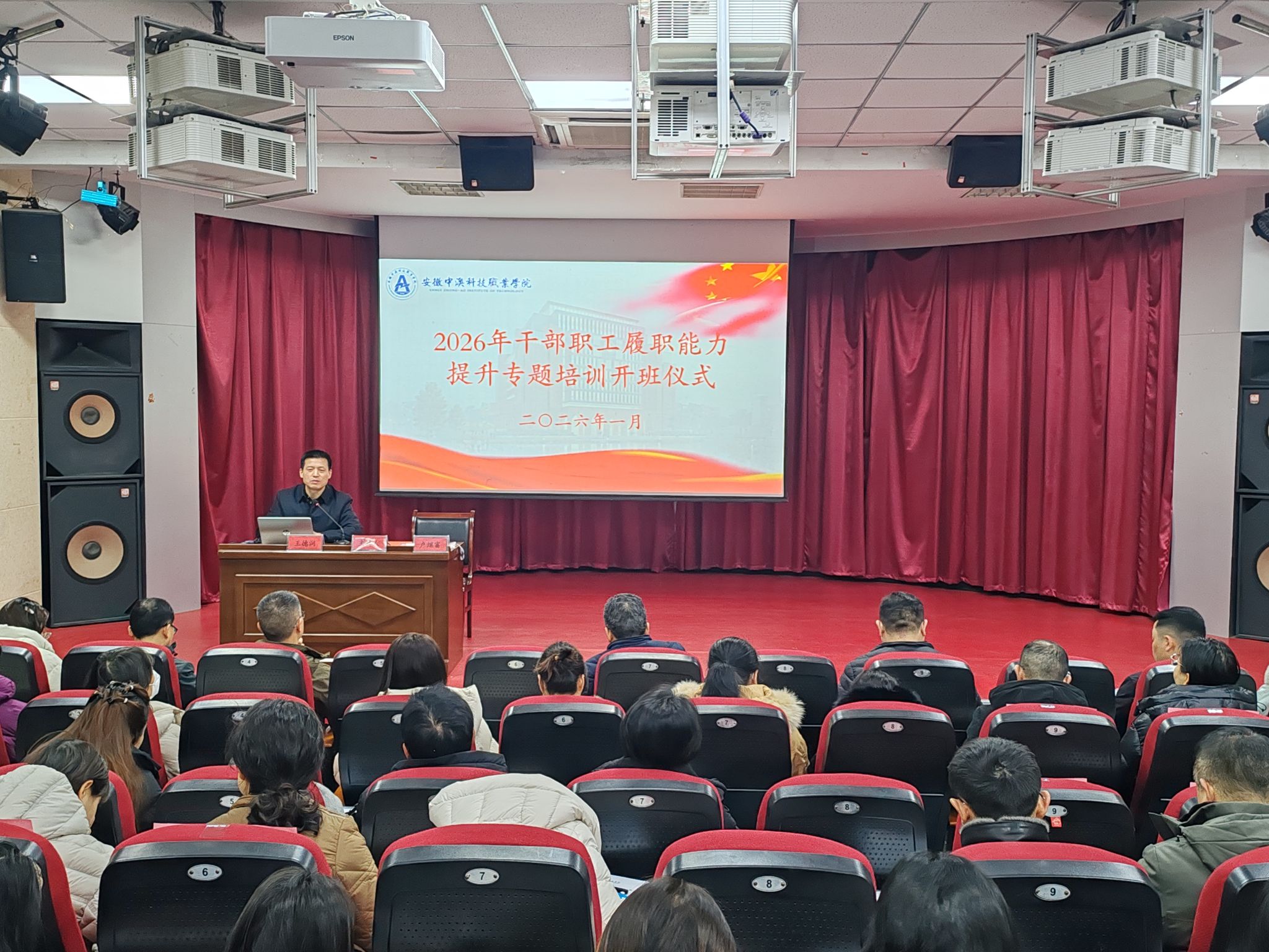 为深入学习贯彻党的二十大和二十届历次全会精神,提升学校干部职工队伍履职能力和综合素养,增强教职工的责任担当与服务效能,1月28日至30日,学校成功举办2026年干部职工履职能力提升专题培训班,学校党委副书记、校长王德润出席开班典礼作动员讲话。学校全体教职工参加培训。