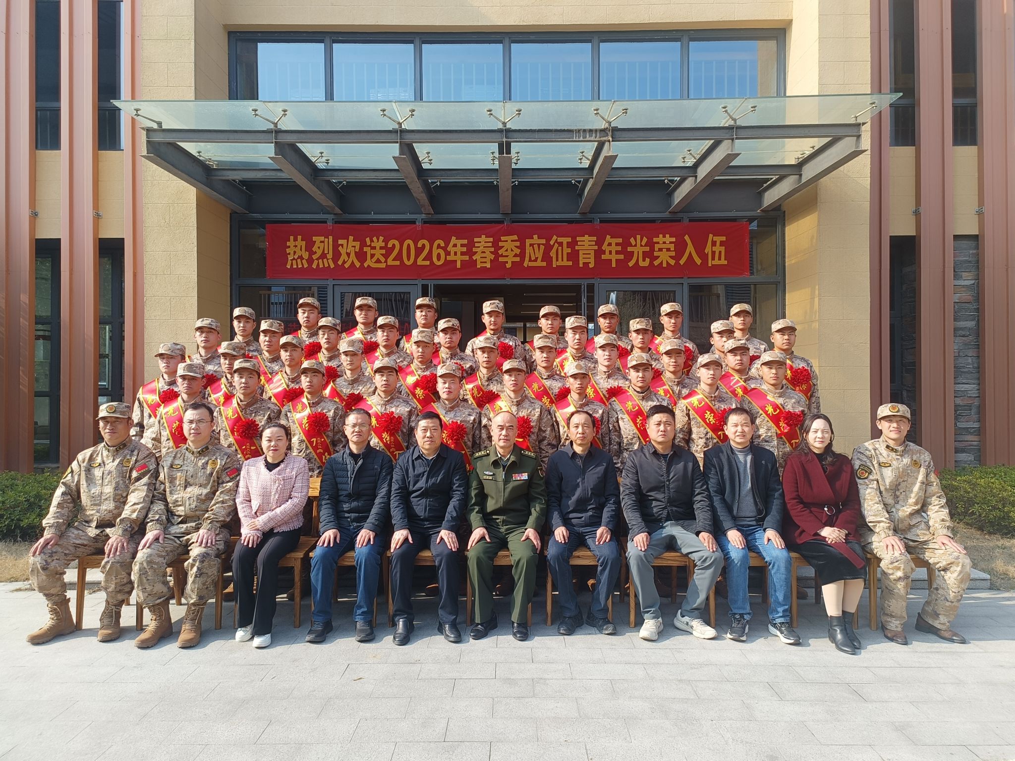 最后,欢送会在热烈的氛围中落幕,全体参会人员合影留念,定格这一光荣而难忘的时刻,为即将奔赴军营的新战士们送上最真挚的祝福。