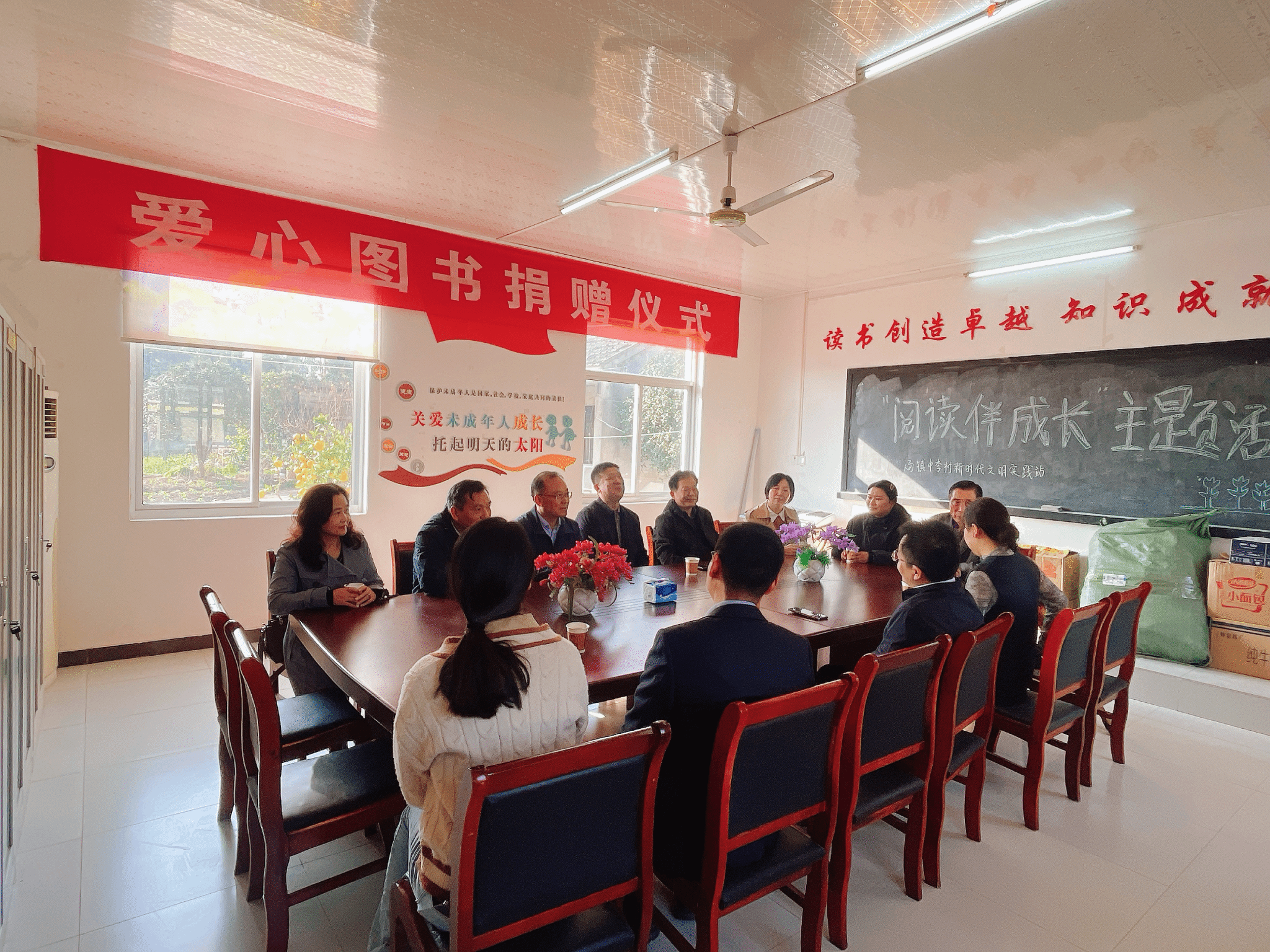 捐赠后,省科技厅、学院领导与学校校长、“中国好人”梁邦定及校方负责人座谈交流。梁邦定校长详细介绍了学校“快乐成长,让爱生爱”的办学理念、“镇+村+高校”共建模式及11年关爱成果,双方围绕留守儿童心理疏导、学业帮扶、兴趣培养等议题深入探讨,就深化校地企合作、拓宽关爱路径达成共识,为精准帮扶筑牢基础。