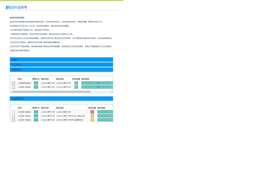 6. 注意:考生报名24小时未支付的科目,系统会自动删除