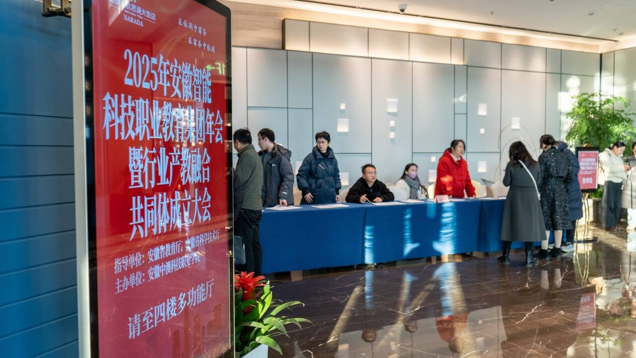 为深入贯彻党的二十大及历次全会精神,全面落实习近平总书记关于职业教育的重要论述,2025年12月27日,我校主办的2025年度安徽智能科技职业教育集团年会暨行业产教融合共同体成立大会在合肥成功举行。此次盛会不仅是安徽智能科技职业教育领域的一次重要集结,更是我校主动服务区域经济社会发展、深化产教融合的关键举措。教务处党支部积极发挥战斗堡垒作用,将党建工作与服务大型会务紧密结合,组织党员教师骨干力量全程参与大会的筹备与服务工作,以高度的责任感和饱满的热情保障了大会的顺利召开。