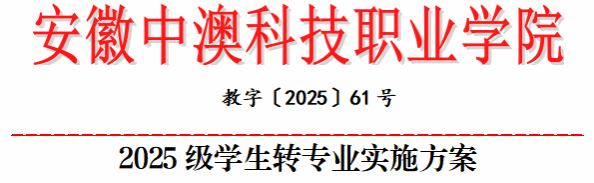 根据《安徽中澳科技职业学院学生转专业办法(修订) 》(院教字〔2025〕4号)精神,结合2025年招生、录取、报到情况,经学院研究,特制订本实施方案。