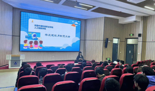 为统筹推进学风建设工作,明确学风建设月活动目标与方向,充分调动全院师生参与积极性,11月12日中午12点30分,安徽中澳科技职业技术学院人工智能学院在学院报告厅隆重召开学风建设月动员大会。人工智能学院党总支副书记孙文瑶主持,学工组长张聪慧和人工智能学院学生代表出席。