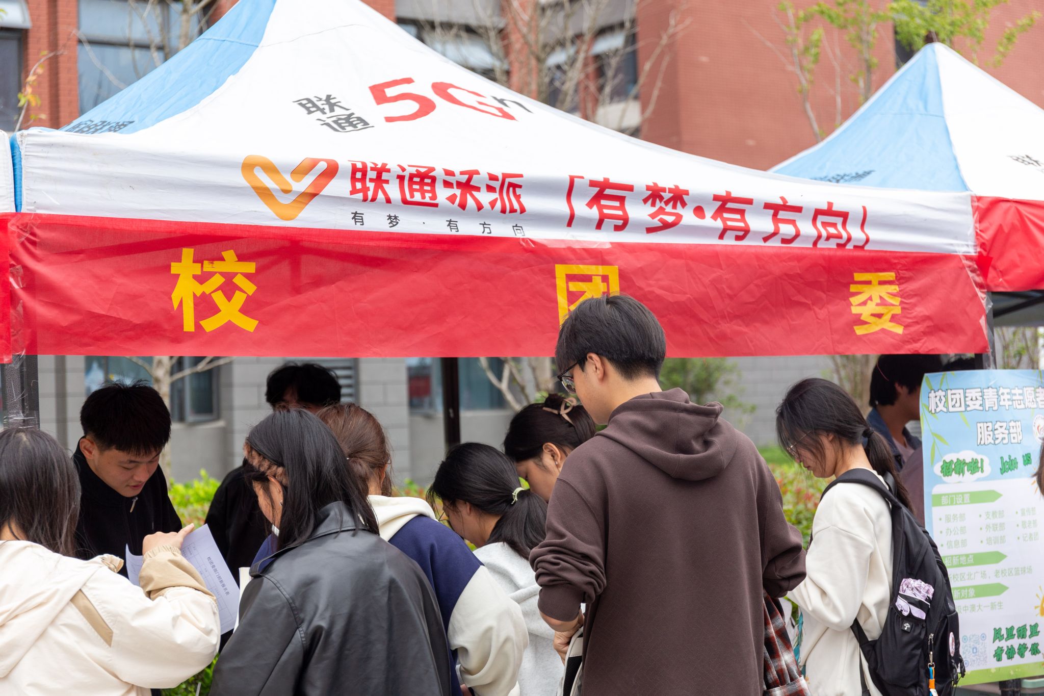 招新现场热闹非凡,各社团充分展现特色与创意。工作人员精心布置展位,色彩鲜明的宣传海报整齐陈列;不少社团还准备了丰富多彩的才艺展示,或是别开生面的互动小游戏,生动直观地向新生传递社团魅力。来往学生驻足围观、积极咨询,在轻松愉快的氛围中深入了解社团,现场不时响起阵阵笑声与讨论声,为校园增添了浓厚的青春气息。