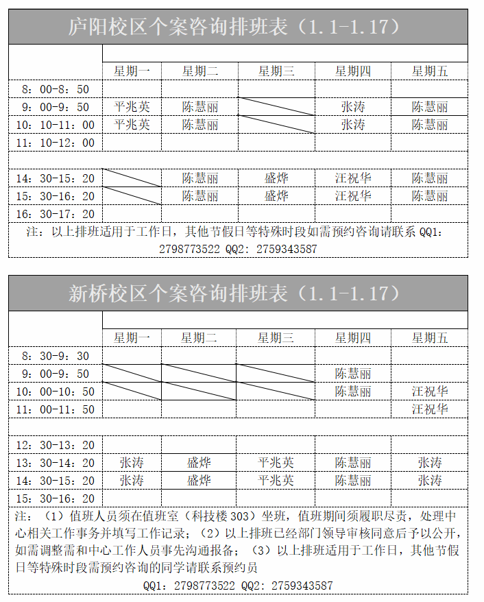 2026年1月(第19-20周)心理咨询排班表