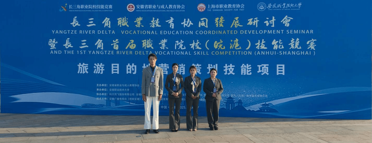2025年12月7日,在安徽职业技术大学举办的“‘魅力新境’——旅游目的地策划与营销创新大赛”中,安徽中澳科技学院旅游管理专业代表队凭借出色的综合表现,荣获三等奖。此次获奖不仅是学院教学成果的一次成功检验,更是学院主动融入长三角一体化发展,积极参与区域职业教育协同与技能交流的生动实践。