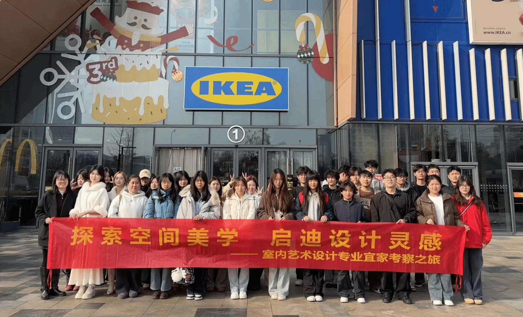 实践考察走进宜家家居合肥商场。作为全球知名的家居设计品牌,宜家的空间布局、收纳系统、人性化设计细节,成为学生们感知 “设计服务生活” 的直观样本。学生们穿梭于不同风格的样板间,观察户型规划、软装搭配、色彩协调等实用设计技巧,重点记录小户型收纳解决方案、灯光层次设计等专业要点。在家具展区,师生围绕 “功能与美学的平衡” 展开讨论,分析产品设计如何兼顾实用性、经济性与观赏性。“原来好的设计不仅要好看,更要解决生活痛点。” 学生们在现场实践中深刻体会到设计的民生属性。