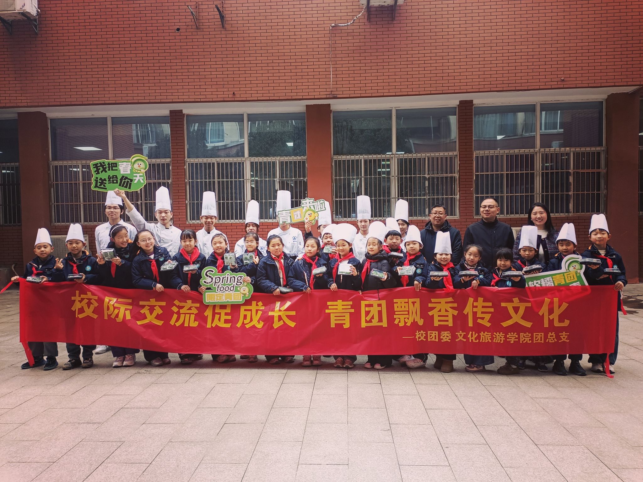 3月20日上午,文化旅游学院团总支联合烹饪工艺与营养专业,为合肥市四河小学20名小学生精心开展“青团飘香传文化”主题实践活动。本次活动以清明节传统美食青团为载体,将中华节气文化、劳动教育与高校专业实践深度融合,让文化传承走出书本、贴近实践,同时搭建校地联动育人桥梁,实现小学生素养提升与大学生实践成长的双向赋能。合肥市四河小学党支部副书记俞超、少工委成员何寿霞,文化旅游学院党政秘书陈宇飞出席本次活动。