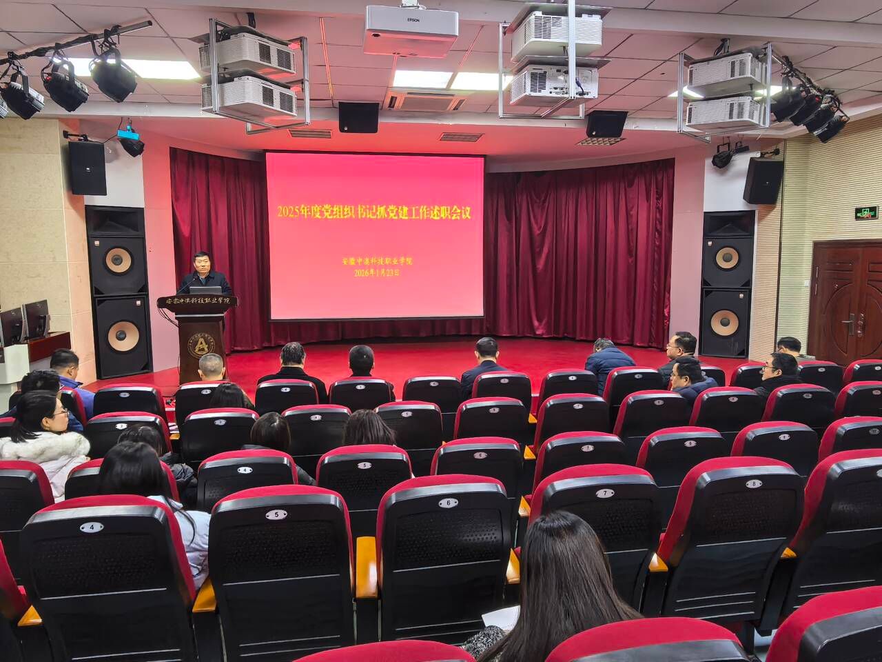 2026年1月23日下午,学校组织召开2025年度党组织书记抓党建工作述职评议会议,校党委班子成员,基层党组织书记、组织员,党员和群众代表参加。会议由党委书记杨恒宇主持。厅机关党委专职副书记胡光出席会议并进行指导。